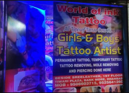 WORLD OF INK TATTOO World of ink Tattoo is a well-recognized Tattoo Shop in Dhanbad, providing services to the clients in and outside Dhanbad. They are one of the most famous Tattoo shops in Dhanbad, providing various services like tattooing, pier