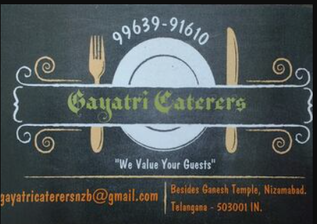 GAYATRI CATERERS Gayatri Caterers is one of the trusted caterer services in Namdevwada, Nizamabad. They take care of the reputation of the Customer. That's why they believe in customer satisfaction which helps them to grow their business popul