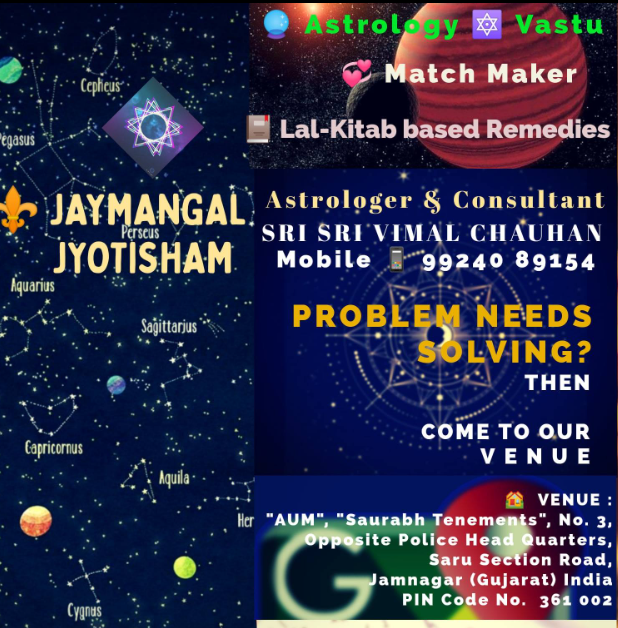 JAYMANGAL JYOTISHAM Jaymangal Jyotisham is one of the renowned astrologers in Jamnagar. His field of expertise includes various types of astrological problems like Vastu shastra, love & relationship problems, health problems, career