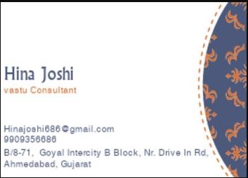 VASTU CONSULTANT HINA JOSHI Vastu Consultant Hina Joshi is one of the popular and knowledgeable Vastu Experts in Drive In Rd, Ahmedabad. His expertise in Vastu Shastra includes direction of living space together with combining all five nature'