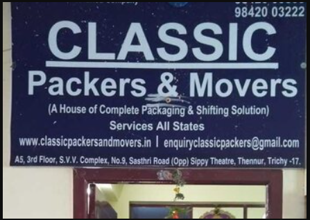 CLASSIC PACKERS AND MOVERS Classic packers and movers providing packing and moving services all over Tiruchirappalli, is a well-known packer and mover engaged in moving and shifting all types of goods with utmost care. They make sure all the belon
