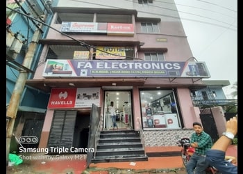 F.A ELECTRONICS Is a good electronic shop in Cooch Bihar. Here one can get all types of electronic household appliances like refrigerators, AC, TV, washing machine, Home decor appliances are also available